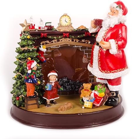 Werchristmas Decorazione Natalizia Musicale E Animata 25 Cm Soggetto Scena Con Babbo Natale E Caminetto Con Effetto Fuoco Amazon It Casa E Cucina
