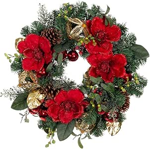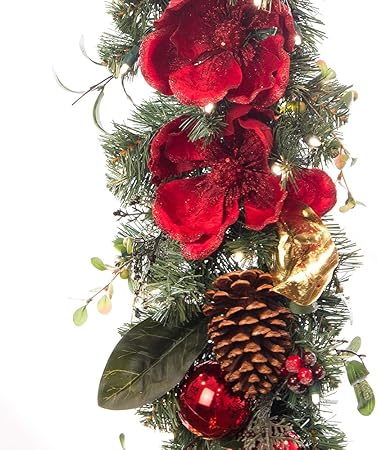 Village Lighting Company Ghirlanda Natalizia Artificiale Da 61 Cm Collezione Magnolia Rossa Decorazione Rossa E Dorata Con Pigne Fiori E Foglie Di Magnolia E Ornamenti Dorati Amazon It Casa E Cucina