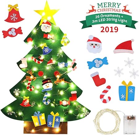 Idefair Albero Di Natale In Feltro Fai Da Te 26 Pezzi Ornamenti Rimovibili Con Luce A Stringa 3 2ft Decorazioni Natalizie Da Appendere A Parete Amazon It Casa E Cucina