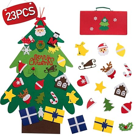 Albero Natale Feltro 3d Fai Da Te Albero Di Natale In Feltro Per Bambini Con Ornamenti 17 Pezzi Per Decorazioni Natalizie O Regali Per Bambini Amazon It Casa E Cucina