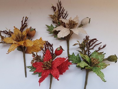 Decorazioni Natalizie Fiori Finti Lotto Stock 5 Pezzi Ebay