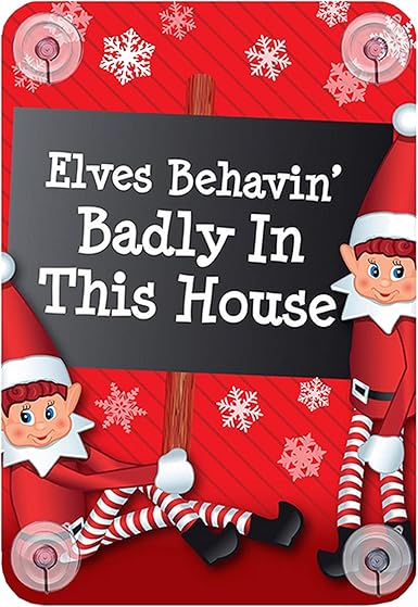 Christmas Shop Ironica Decorazione Natalizia Per Finestra In Inglese Taglia Unica Elves Behaving Badly In This House Amazon It Abbigliamento