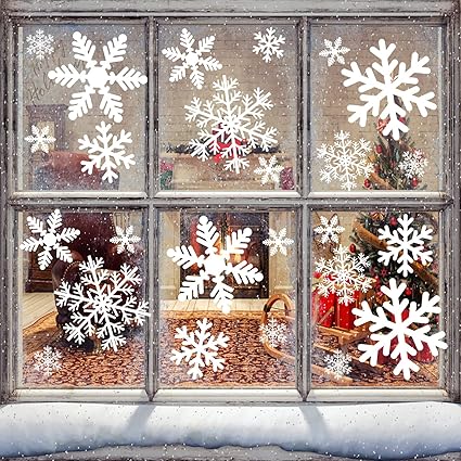 Natale Vetrofanie Adesivi Per Finestre Di Natale Con Fiocchi Di Neve Decalcomanie Da Parete Smontabili Decorazioni Per La Casa Fai Da Te Per Vetrine Natale Capodanno Amazon It Fai Da Te