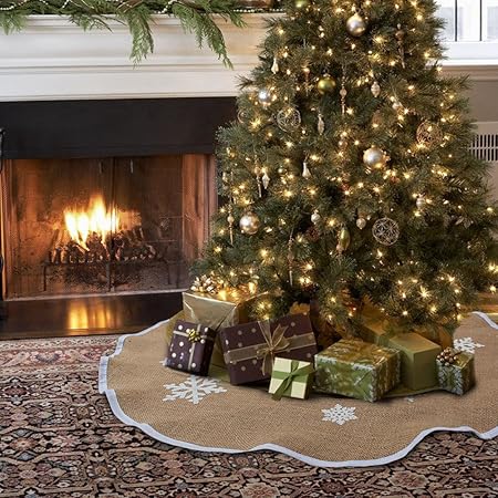 Aytai Albero Di Natale Gonna 121 9 Cm Burlap Albero Di Natale Gonna Fiocco Di Neve Bianco Stampato Decorazioni Natalizie Per Interni Ed Esterni Amazon It Casa E Cucina
