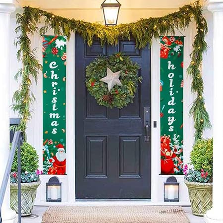Geeric Decorazione Natale Bandiera Natalizie Decorazione Natale Porta Ingresso Natale 2019 Decorazioni Per Negozio Vetrina Finestra Parete Camino Outdoor Indoor Verde Amazon It Casa E Cucina