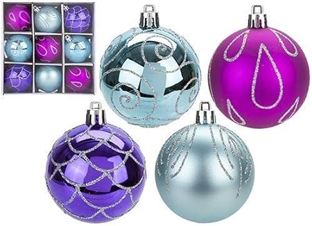 Toyland Confezione Da 9 Palline Per Albero Di Natale Rosa Viola E Blu Da 6 Cm Design Lucido Opaco E Glitter Decorazioni Natalizie Amazon It Casa E Cucina