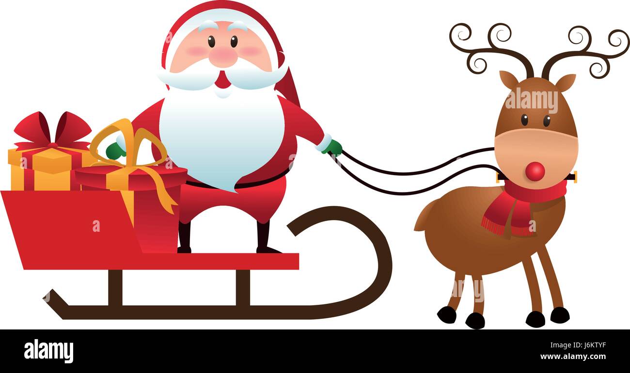 Natale Babbo Natale Renne Doni Della Slitta Cartoon Immagine E Vettoriale Alamy