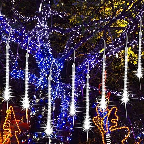 Pioggia Di Luci Led Eeieer Luci Pioggia Meteore Luci Della Pioggia Di Meteore Ip65 Luci Pioggia Natale Halloween Albero Del Giardino Festa Di Nozze Bianco 30cm 8tubes 192leds Amazon It Illuminazione