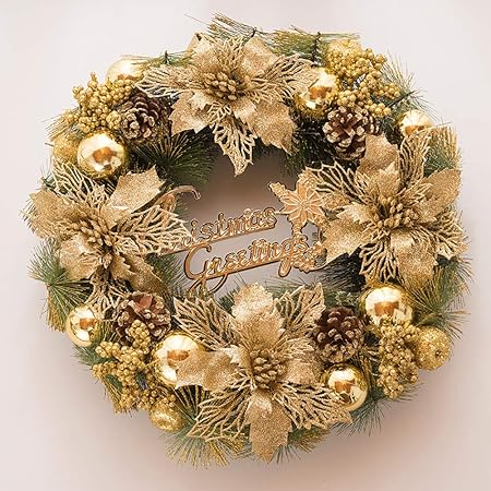 Yiwa Corona Di Bacche Di Pigne Simulate Di Natale Per Interni Decorazioni Natalizie Per Esterni Lino 38cm Amazon It Casa E Cucina