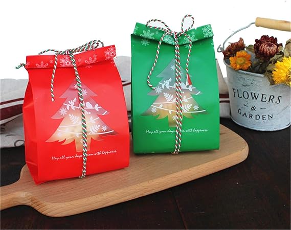Puting 100 Sacchetti Per Biscotti E Caramelle Con Decorazione Albero Di Natale 20 Cm Con Cordoncino Rosso Verde E Bianco Da 100 M Albero Di Natale Amazon It Casa E Cucina